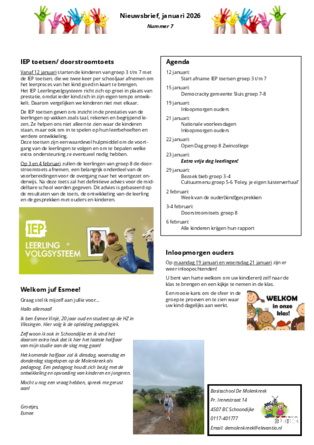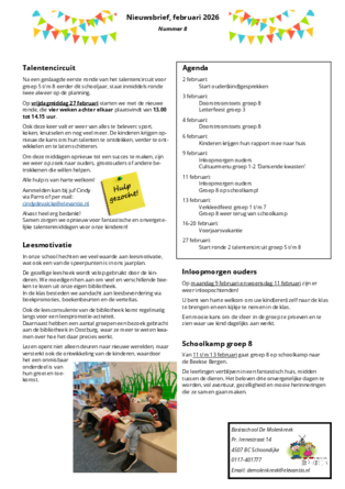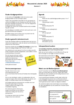 Elke drie weken sturen wij een nieuwsbrief vol updates over het schooljaar, activiteiten, belangrijke data en alles wat voor u en uw kind handig is om te weten.